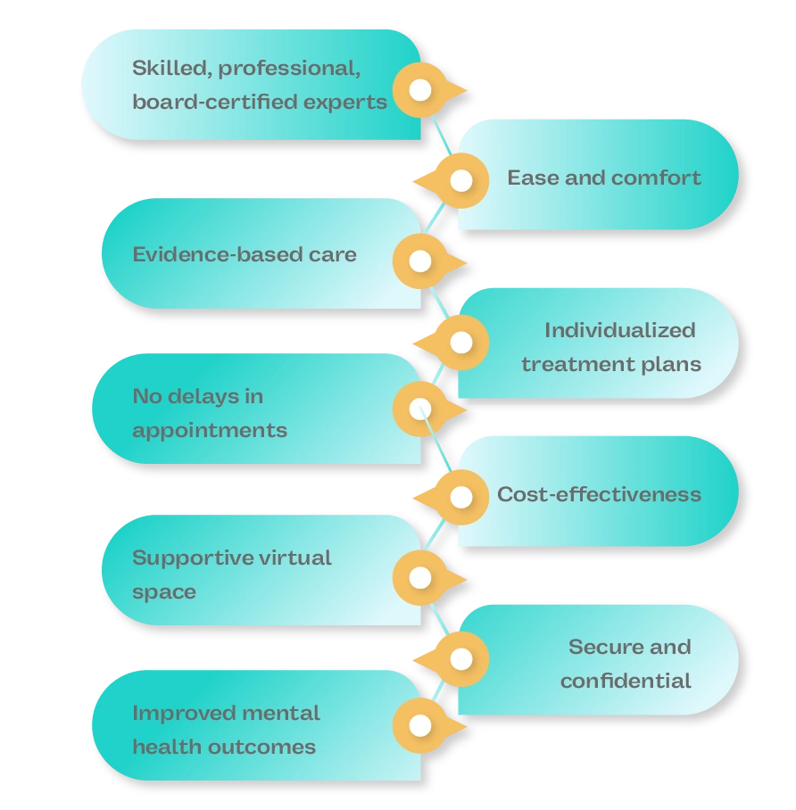 Get convenient, finest quality virtual mental health care within the comfort of your home to get rid of your common mental health issues and live a healthier life. A pathway to healthy living is within your reach.